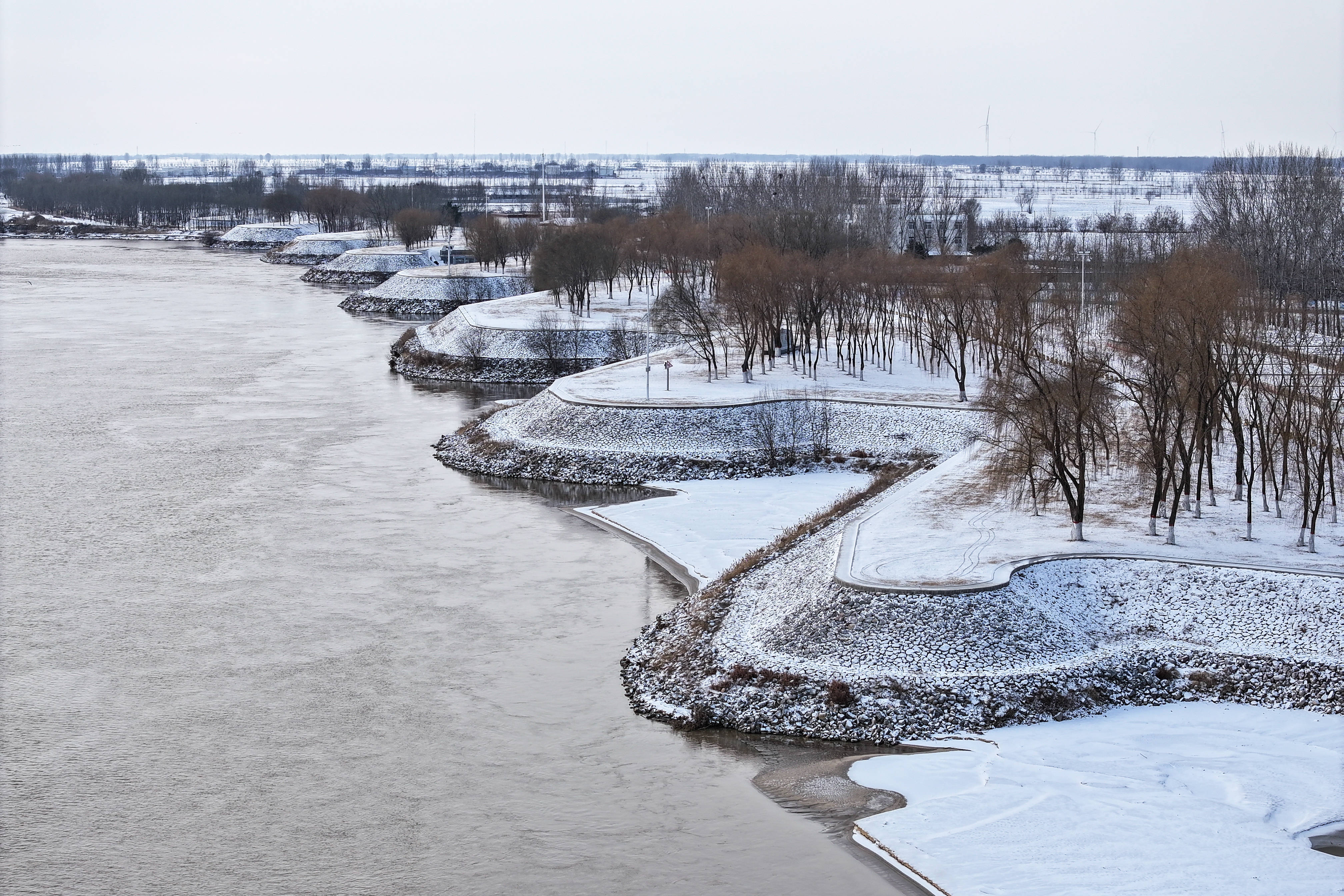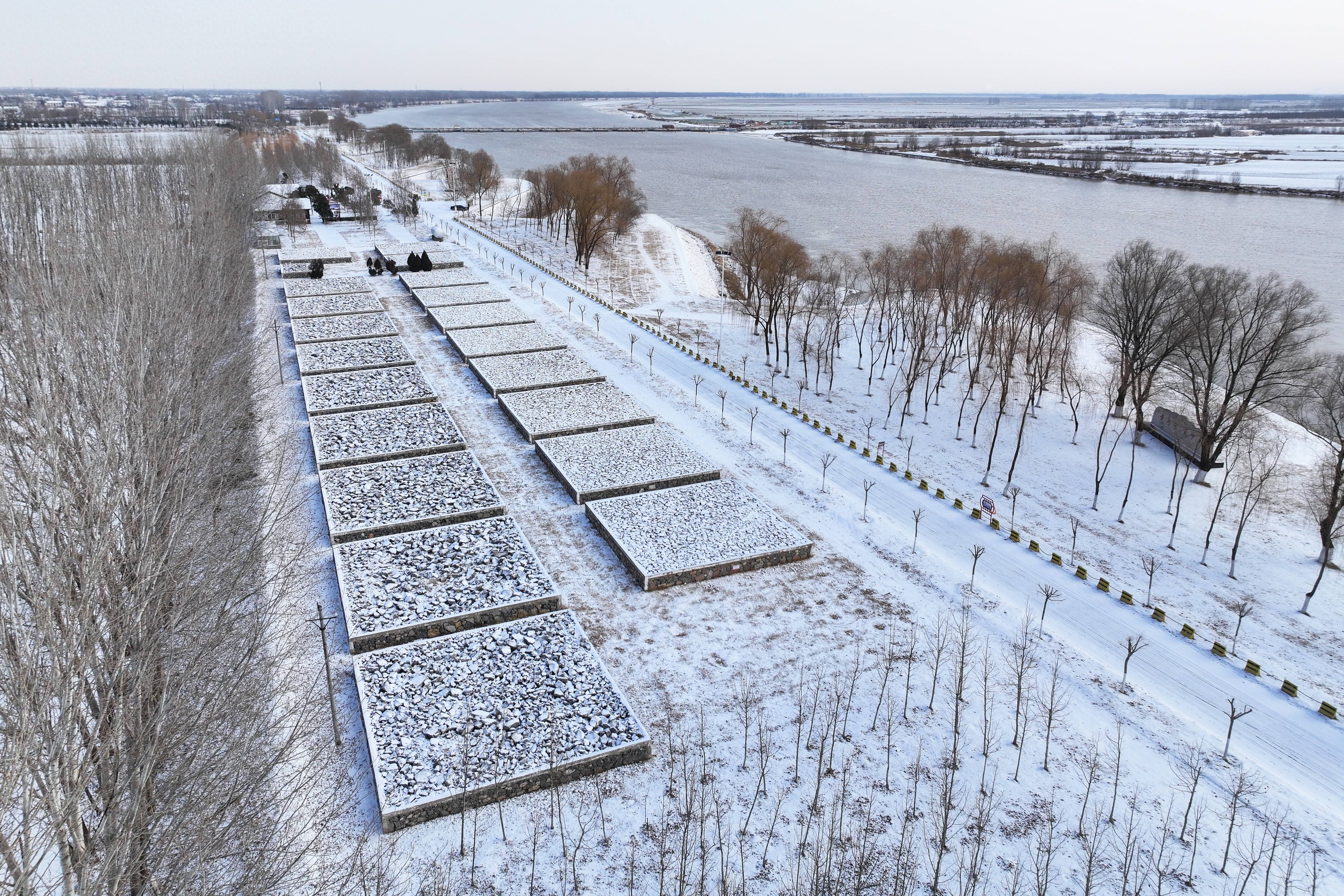雪落在长垣境内的黄河上,雪落在黄河岸边的长垣市。
