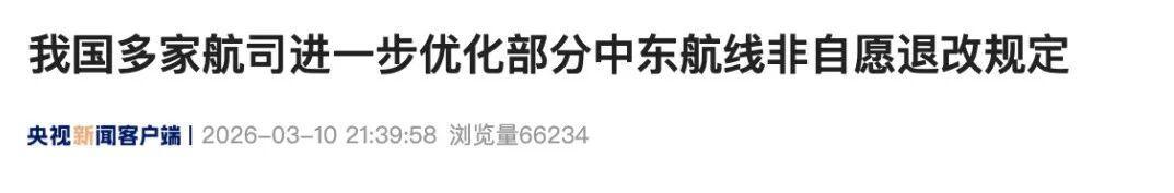涉中东航路,国内多家航司优化非自发退改决策。