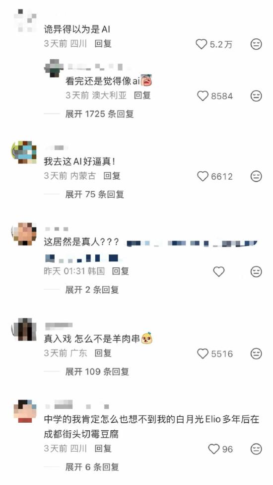 网友看完集体千里默 3 秒,只可评价:“诡异到像 AI。”