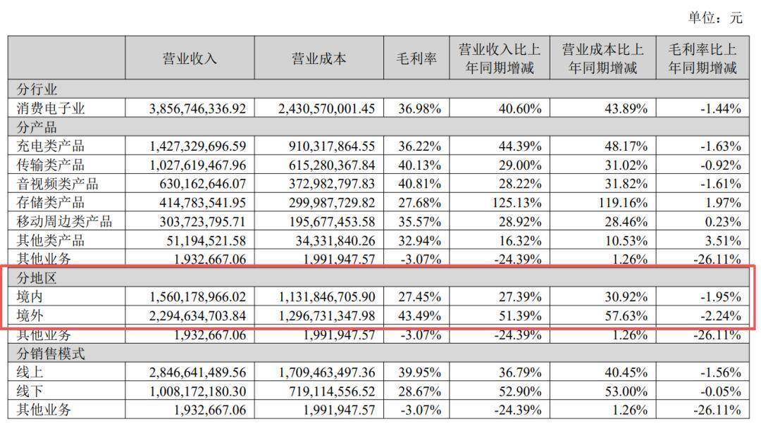 在这些明确的全球化贪图下,2025年前三季度,绿联的外洋市集收入进一步增长56.3%,高达37.8亿元,在总收入中的也达到了59.6%,距离占比打破60%仅一步之遥。