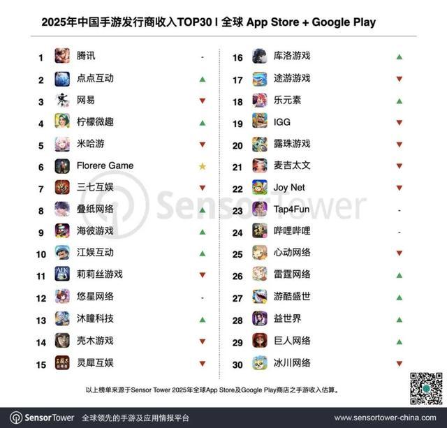 在Sensor Tower发布的2025年中国手游刊行商各人收入榜中,莉莉丝的名次从上一年的第5名大幅下滑至第11名,被柠檬微趣、Florere Game、三七互娱、叠纸收罗等宽阔同业反超。